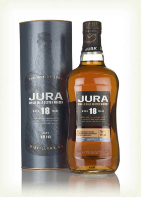 Jura 18 Year Old Single Malt Scotch whisky is matured for eighteen long years in American white oak ex-bourbon barrels and enriched by superior Premier Grand Cru Class Bordeaux barrels. It is a rich island malt with refined, subtle smoky notes that will complete any whisky collection. Jura Single Malt Scotch whisky has been made by a tiny island community, off the west coast of Scotland, since 1810. Whisky is the islands major export and this singular focus combined with a unique split distillation process makes an extraordinary single malt like no other.